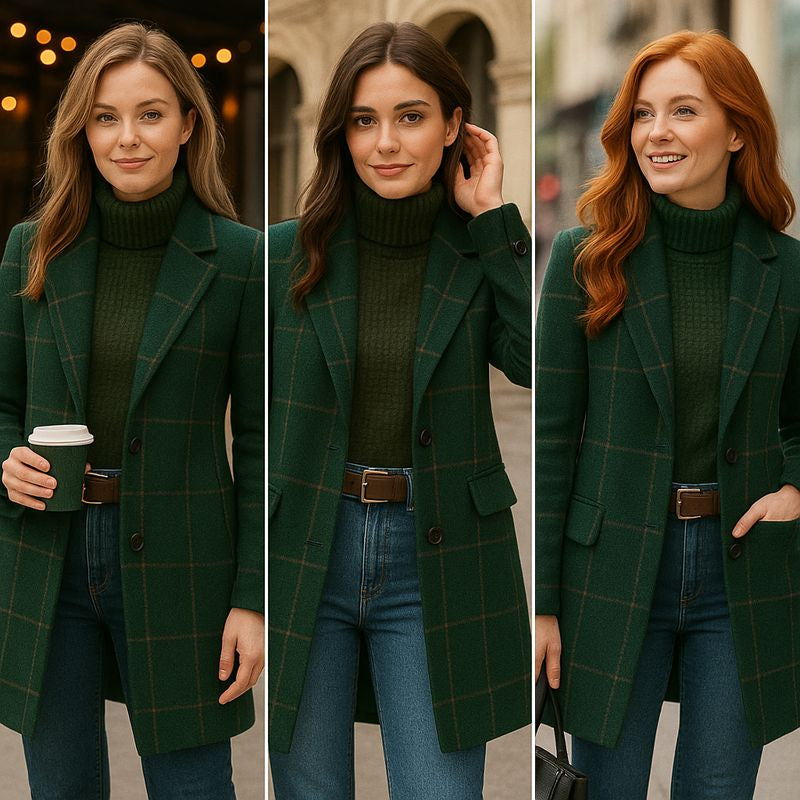 Flo - Abrigo Elegante de Cuadros en Lana